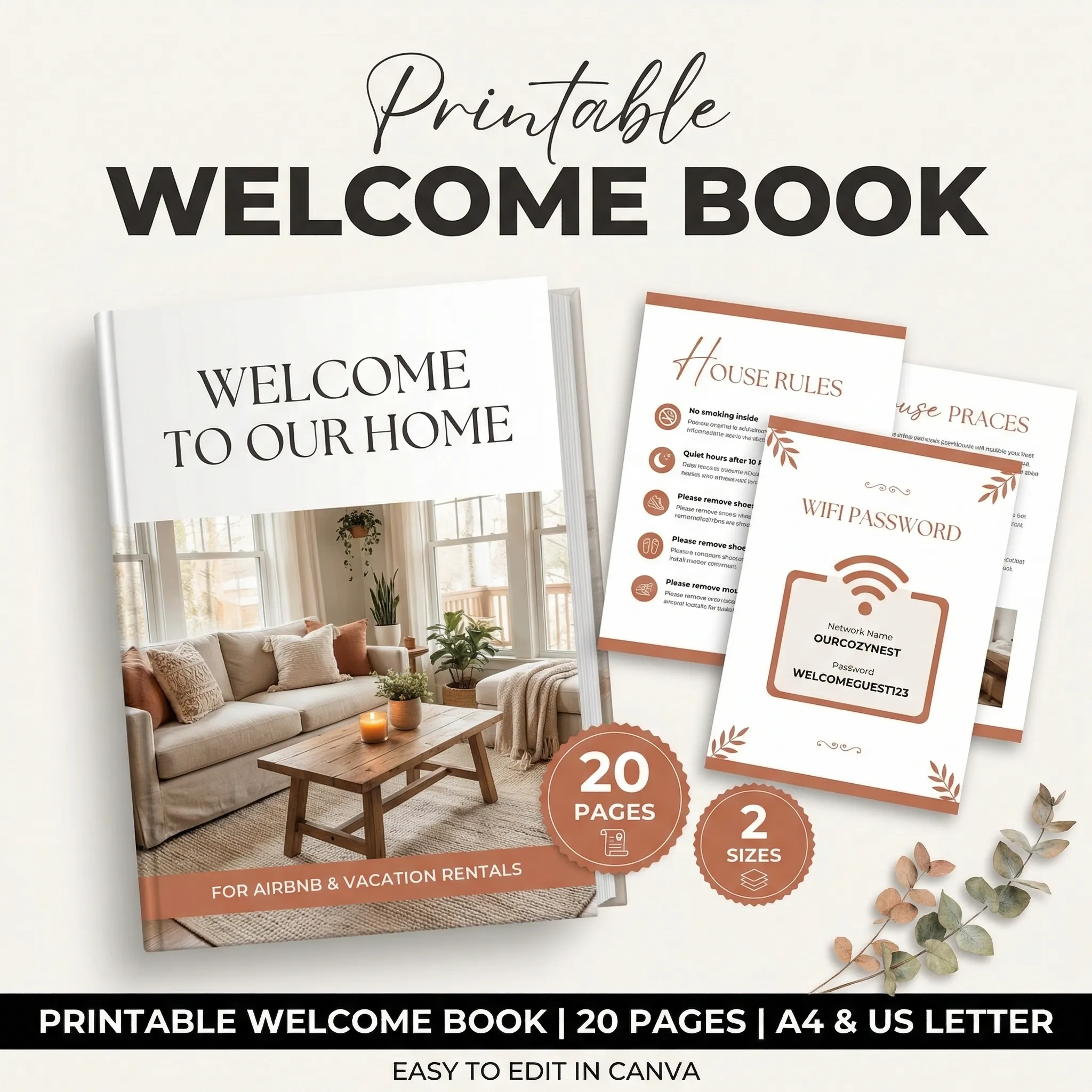 Everything you need to set up your Airbnb: designed, formatted, and ready to edit.