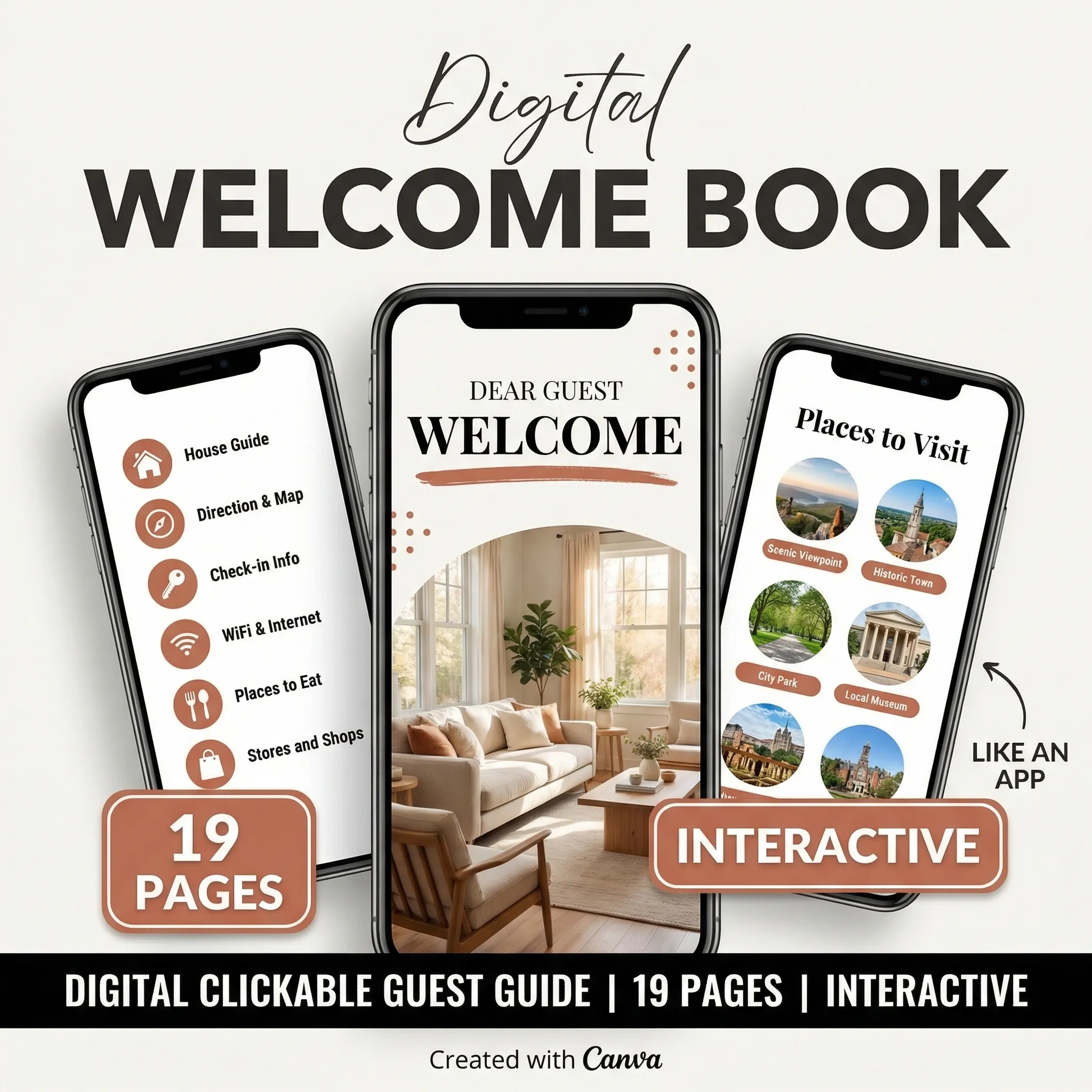 Guests who feel informed and welcomed leave better reviews. This 20-page book answers every question before they think to ask: house rules, local recommendations, WiFi, check-out steps, and more.
