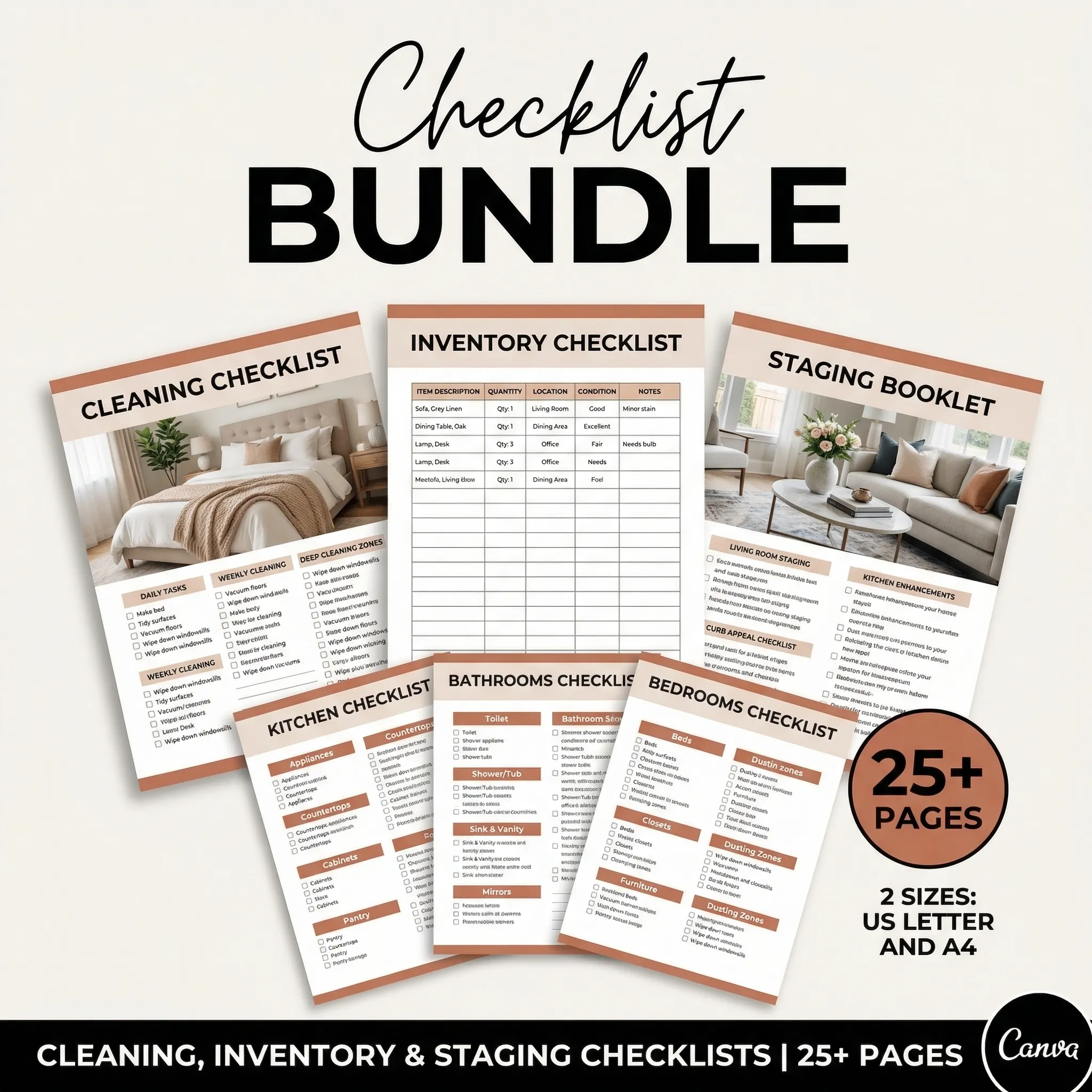 Most hosts lose repeat bookings because they look unprofessional, not because of their space. This bundle gives you a 20-page Welcome Book, 62 House Signs, 25+ Checklists, a Social Media Kit, and a P&L Tracker in one download.