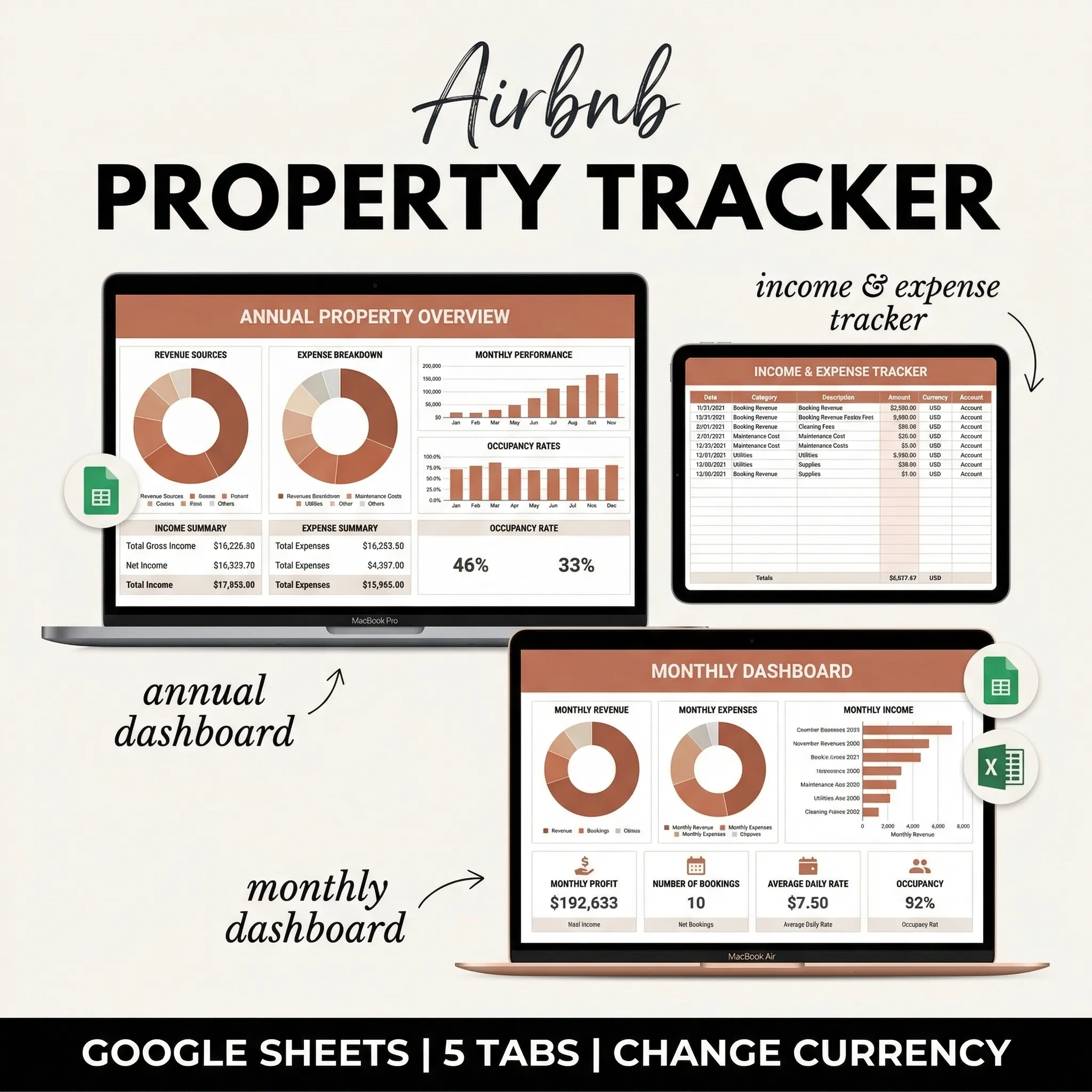 One download. Every template your Airbnb needs, from the first guest impression to the end-of-month profit report.